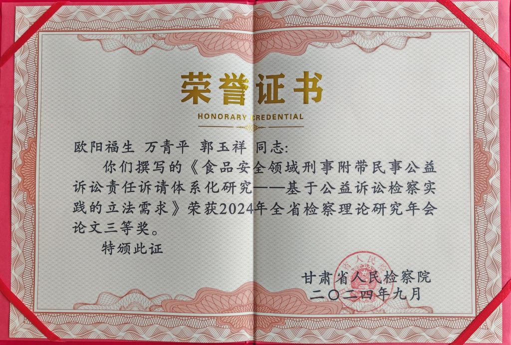 • 【喜報】七里河區人民檢察院干警在全省主題征文活動中斬獲雙獎!2025-03-10